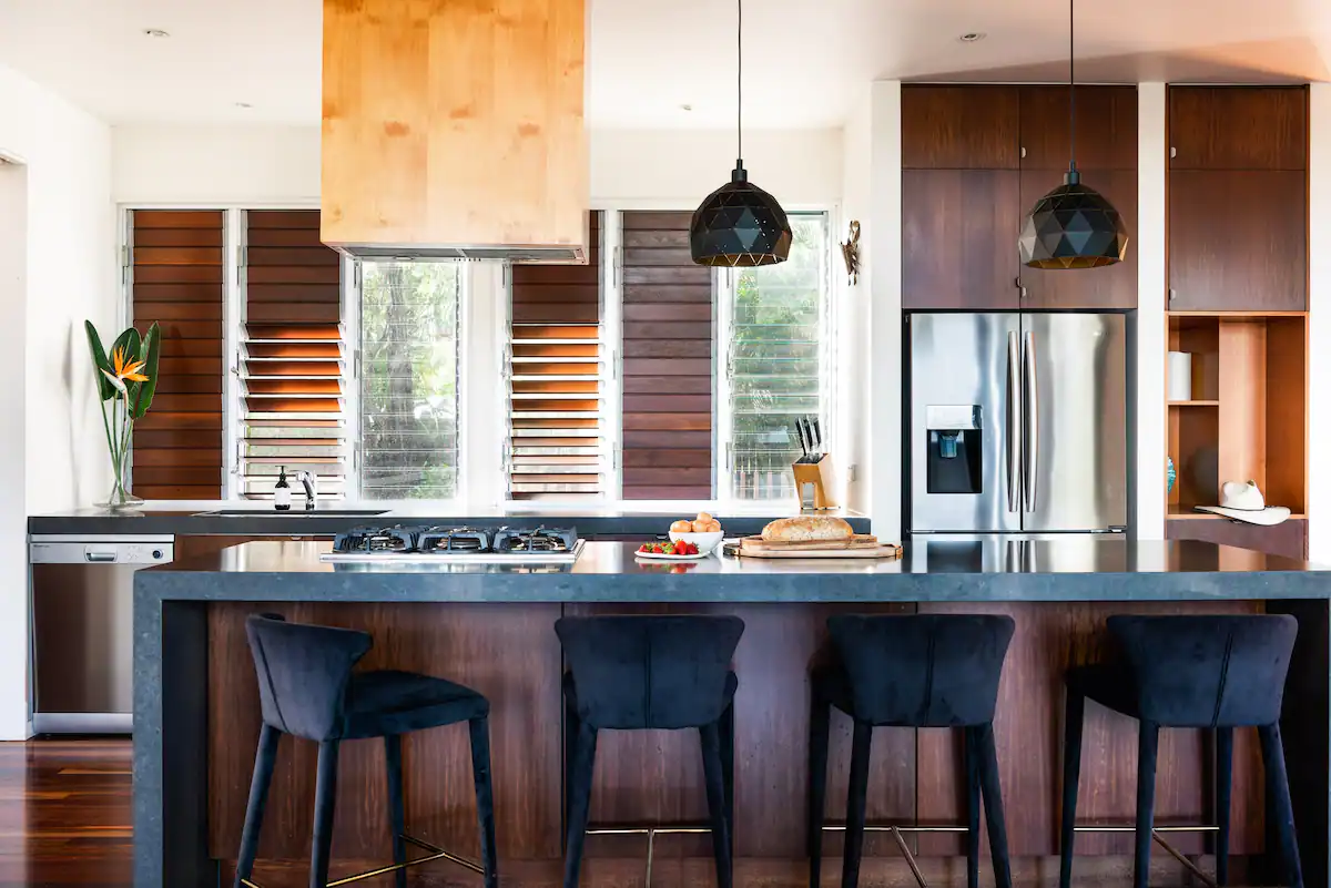 Blue Sapphire was thoughtfully designed to balance opulence with functionality. Spanning across 3 levels, this executive residence is the perfect holiday retreat for discerning travellers seeking luxury, close proximity to the centre of town and deliciously bold aesthetics. With 5 bedrooms, the home sleeps 9 comfortably. Culinary thrillseekers will love the full-sized kitchen and butler’s pantry, which opens to the main deck and BBQ area. The horizon pool on the deck enjoys expansive sapphire blue views across Agnes Water’s main beach (15 mins walk). Blue Sapphire promises a remarkable, unforgettable getaway for you and your loved ones – book now.