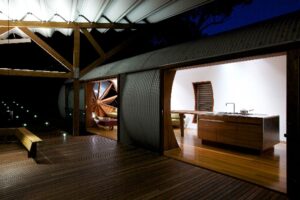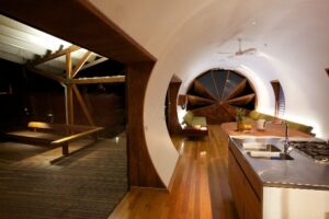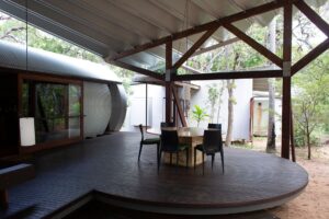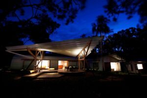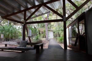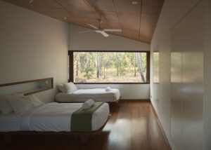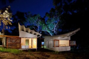 Drewhouse (The Pods) is a uniquely designed beach house providing an indoor “glamping” experience that’s very close to nature. Set on an acre of native coastal forest in the Sunrise at 1770 estate near Agnes Water, the Pods offer a private, back-to-nature getaway for the family. Living, sleeping pods and bathhouse are separated by undercover wooden boardwalks. The wonderful bushland setting and mild sub-tropical climate make for a beautiful Australian stay. Guests are likely to encounter the native wildlife such as goannas, kangaroos, cockatoos, native bush rats, echidnas and micro-bats. Rainwater tanks, solar hot water and electricity make this passive energy-efficient design a low environmental impact. Sleeps 6, 2 bedrooms, 1.5 bathrooms, WIFI.